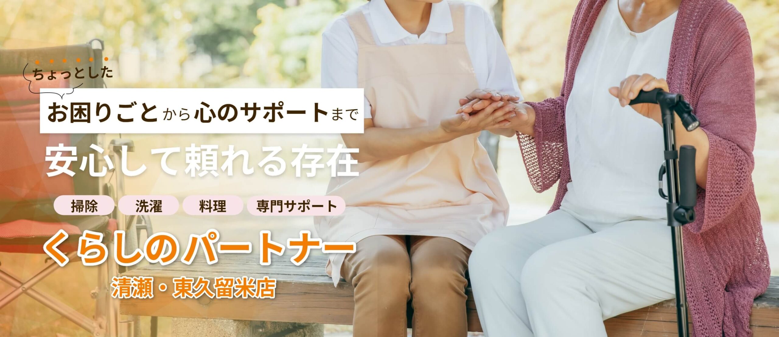 掃除や通院同行だけでなく、心のケアや経営支援など幅広いお手伝いをいたします。
